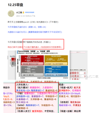 交易方面:中国卫通(6G)老仓没动;硕贝德(液冷+6G天线)开盘套现, 海昌新材(卫星天线+机器人)高抛+33 新开买回昨天出掉的3D打印(计划) 买入北斗卫星应用标杆(相当于卫通)已封板 买入1笔对标五洲新春供货新剑的小票,以前小作文号称小新春 目前持有航天(材料和6G应用)3笔,机器人1笔 AI硬件当了年猪,保证了流动性,航天、机器人、AI应用、有色等表现还行。 (其它见图补充)