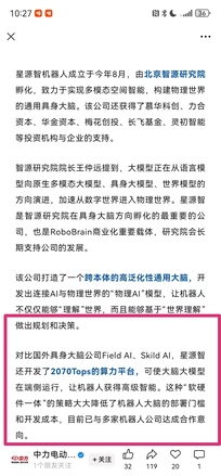 中力股份投资具身“黑马”——星源智机器人,通过资本与技术合作,挑战叉车机器人的智能高地,加速“具身装卸”商业化落地,持续深化“场内外一体化”的智能无人物流布局! 文章中写着对标skild AI 而且比他还厉害 机器人今年最快千亿独角兽Shild AI,估值升至超一千亿人民币。本轮融资由软银领投,英伟达、Macquarie、1789 Capital、贝索斯家族办公室Bezos Expeditions跟投,三星、LG、Salesforce等公司也参与其中。 中力股份:对比国外具身大脑公司kild A