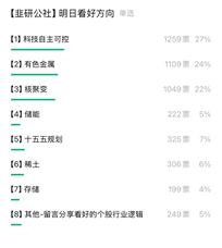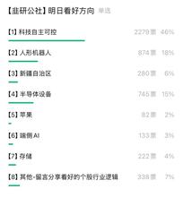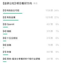 投票数据: 【1】科技自主可控: 1)摩尔线程:2025年9月26日盘后消息,摩尔线程IPO申请已通过上交所科创板上市委会议审议。 2)芯片:2025年9月20日,国常会研究关于在政府采购中实施本国产品标准及相关政策。 3)半导体设备:据外媒报道,国产DUV光刻机正在送样测试(未证实)。 【2】人形机器人: 2025年9月27日,马斯克在X平台发布推文:特斯拉正在努力扩大Optimus规模。 【3】汽车: 2025年9月27日,工信部副部长表示,将实施新一轮汽车行业稳增长工作方案,优化新能源汽车