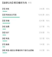 投票数据: 【1】科技自主可控: 1)摩尔线程:2025年9月26日盘后消息,摩尔线程IPO申请已通过上交所科创板上市委会议审议。 2)芯片:2025年9月20日,国常会研究关于在政府采购中实施本国产品标准及相关政策。 3)半导体设备:据外媒报道,国产DUV光刻机正在送样测试(未证实)。 【2】人形机器人: 2025年9月27日,马斯克在X平台发布推文:特斯拉正在努力扩大Optimus规模。 【3】十五五规划: 2025年9月29日,中共中央政治局召开会议,研究制定国民经济和社会发展第十五个五年